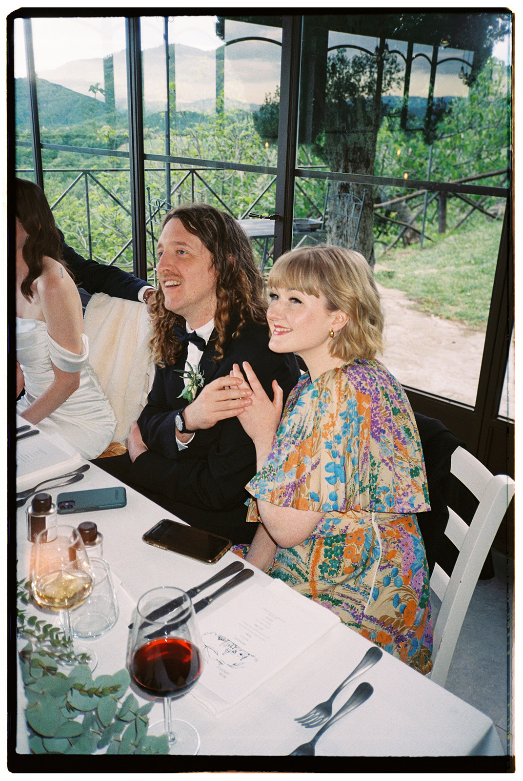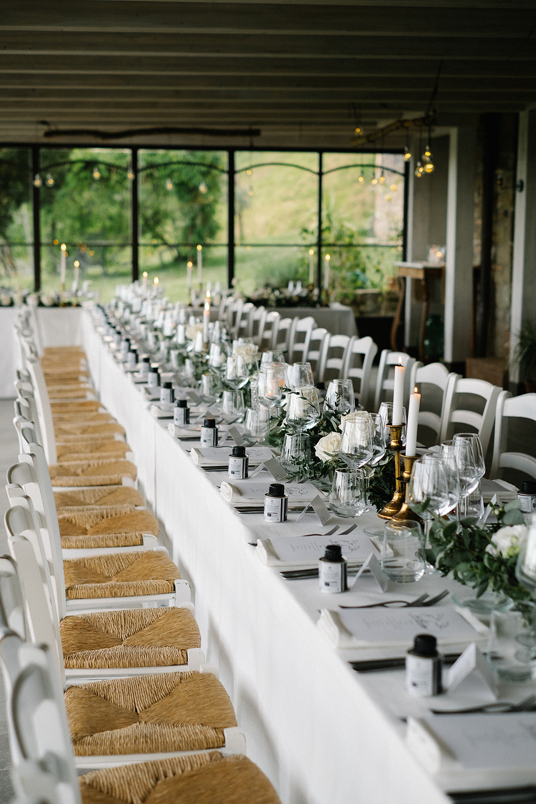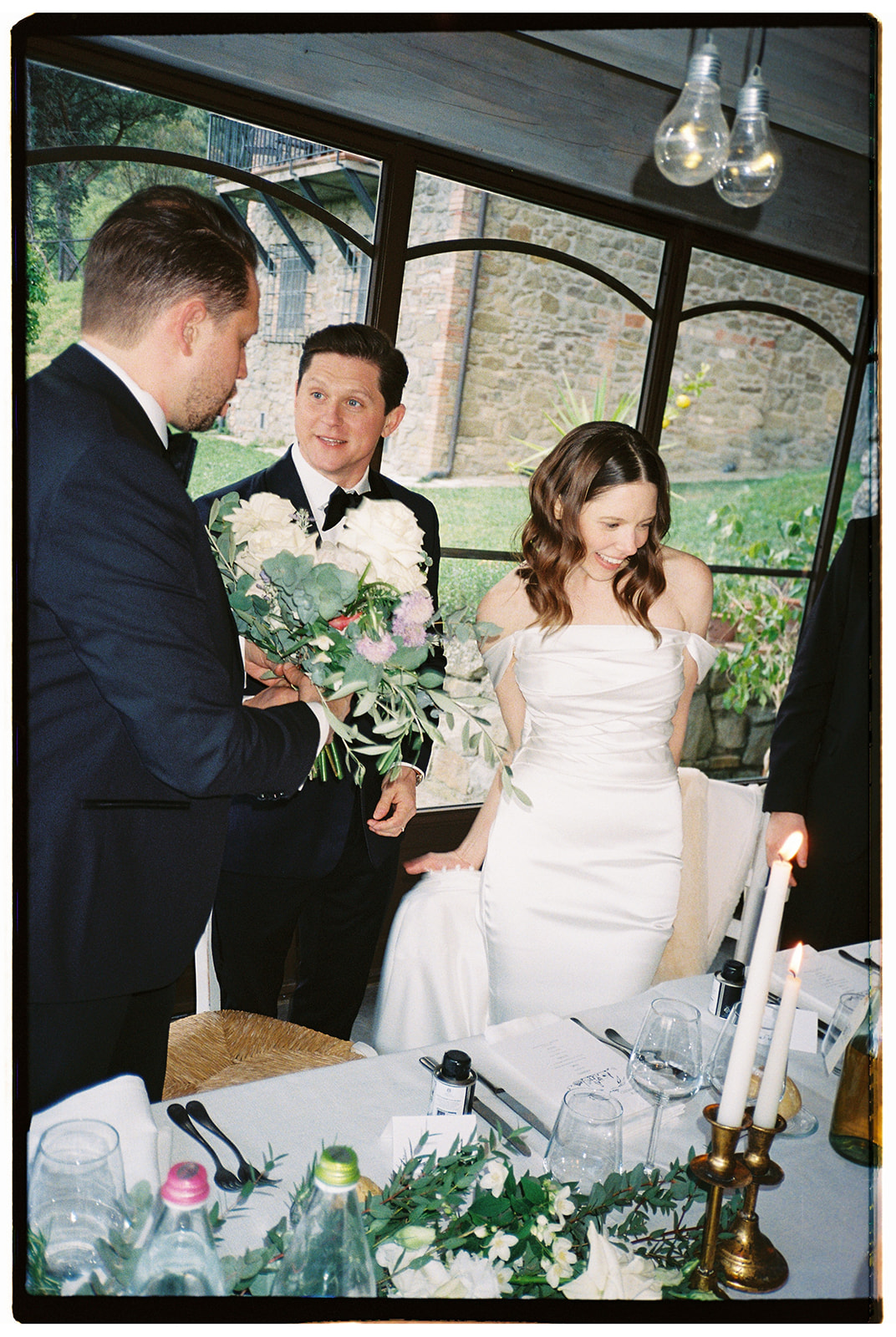The ceremony took place in the Olive Groves, with the lush trees providing a serene and intimate setting. Despite the cloudy weather, the soft, diffused light created a romantic and ethereal atmosphere. Luisa Gorvasi of Bloom crafted beautiful floral arrangements that perfectly complemented the natural beauty of the surroundings, adding vibrant splashes of color to the serene landscape.