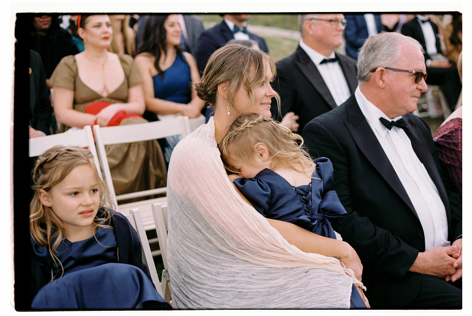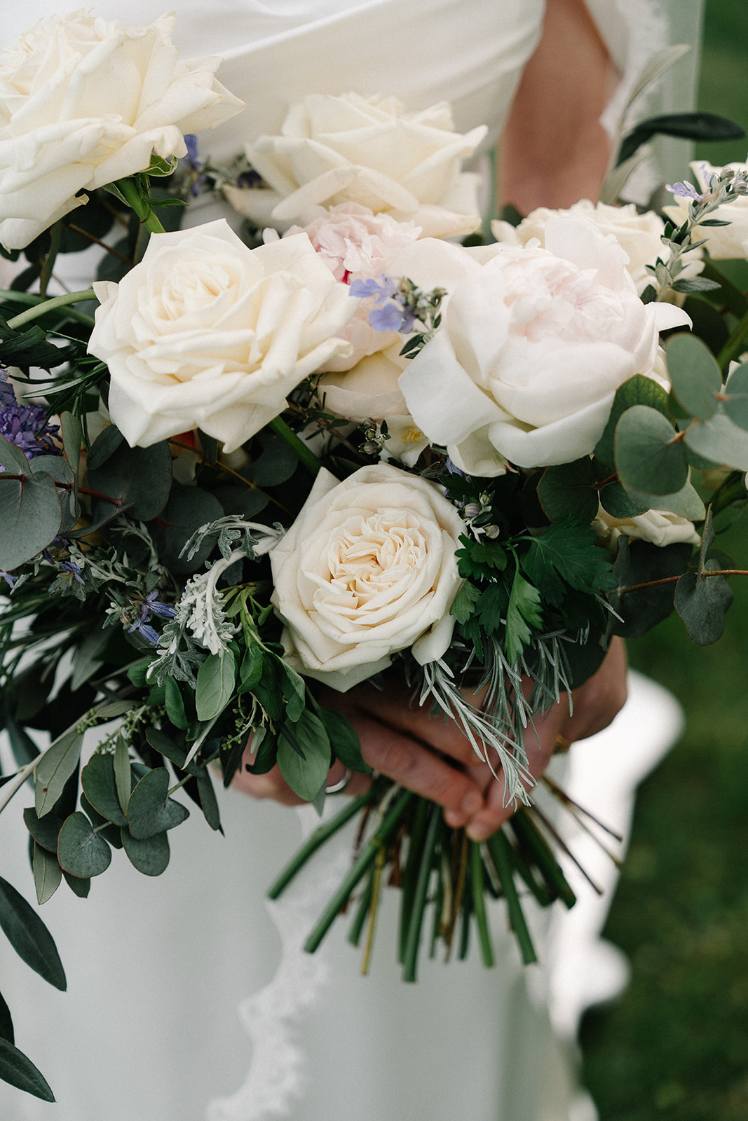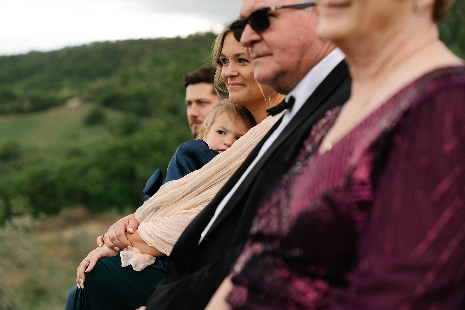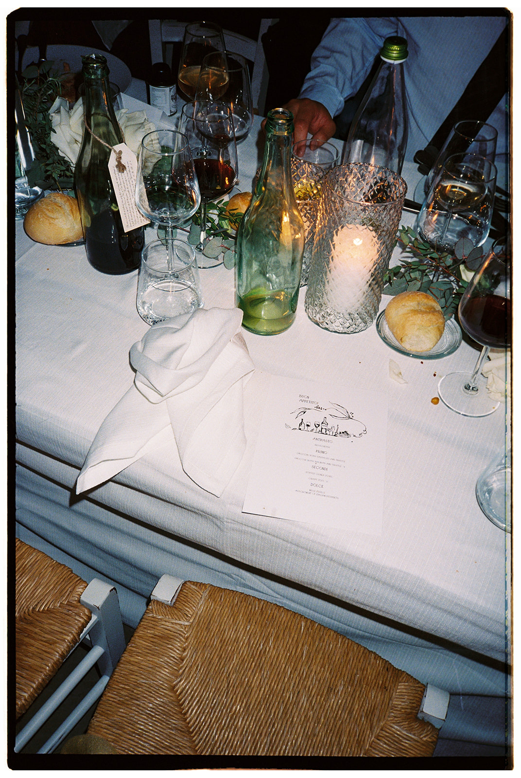 The ceremony took place in the Olive Groves, with the lush trees providing a serene and intimate setting. Despite the cloudy weather, the soft, diffused light created a romantic and ethereal atmosphere. Luisa Gorvasi of Bloom crafted beautiful floral arrangements that perfectly complemented the natural beauty of the surroundings, adding vibrant splashes of color to the serene landscape.