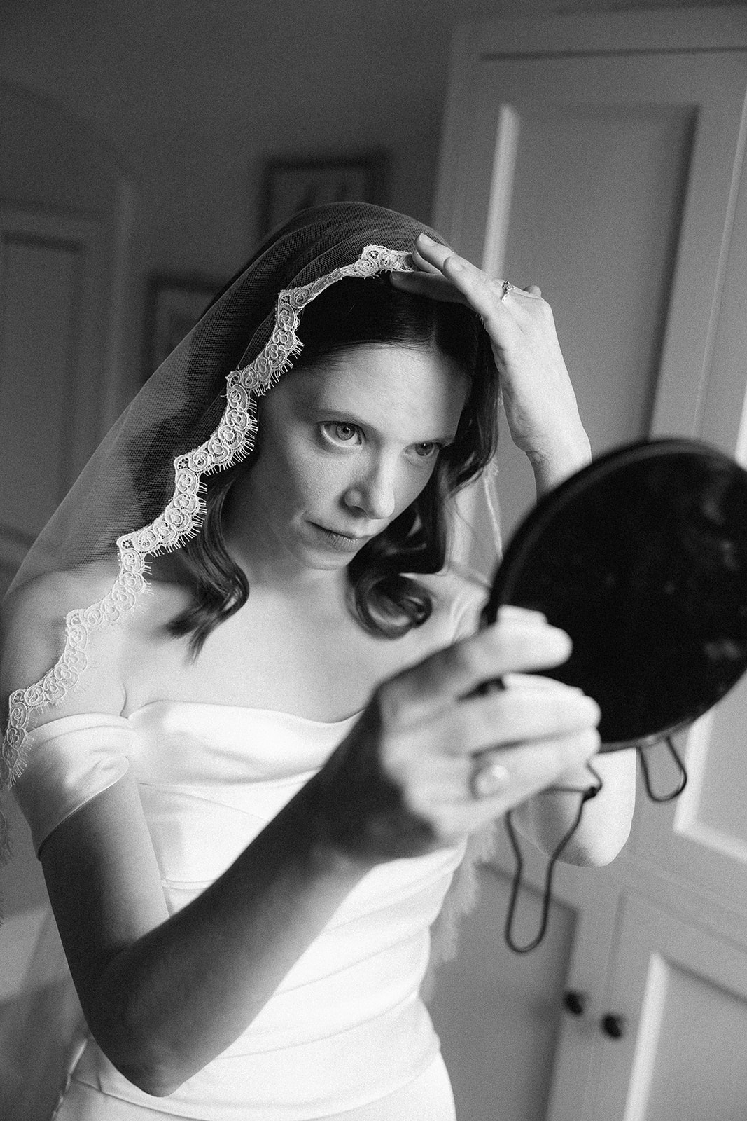 The day began with capturing the bride’s preparations. The exquisite Maggie Sottero gown hung gracefully, reflecting the morning light, while the elegant Kate Spade shoes added a touch of sophistication to the bridal suite. The bride’s anticipation and joy were palpable as she prepared, surrounded by her closest friends and family. Kleinfelds, renowned for its luxurious bridal collections, was the source of this stunning dress, adding an extra layer of charm to the shoot.